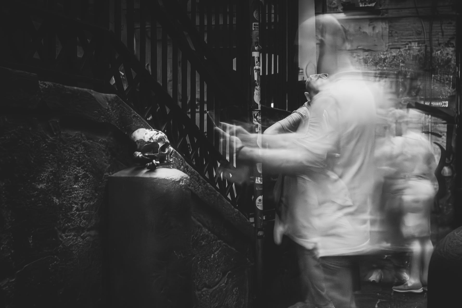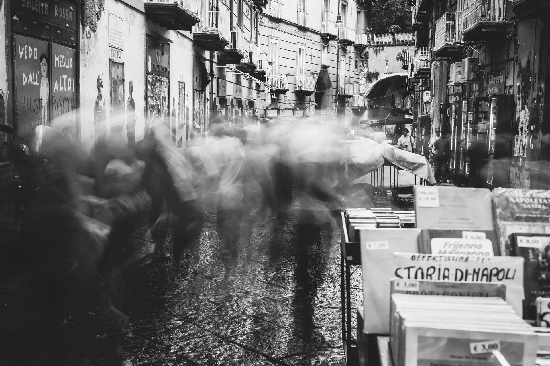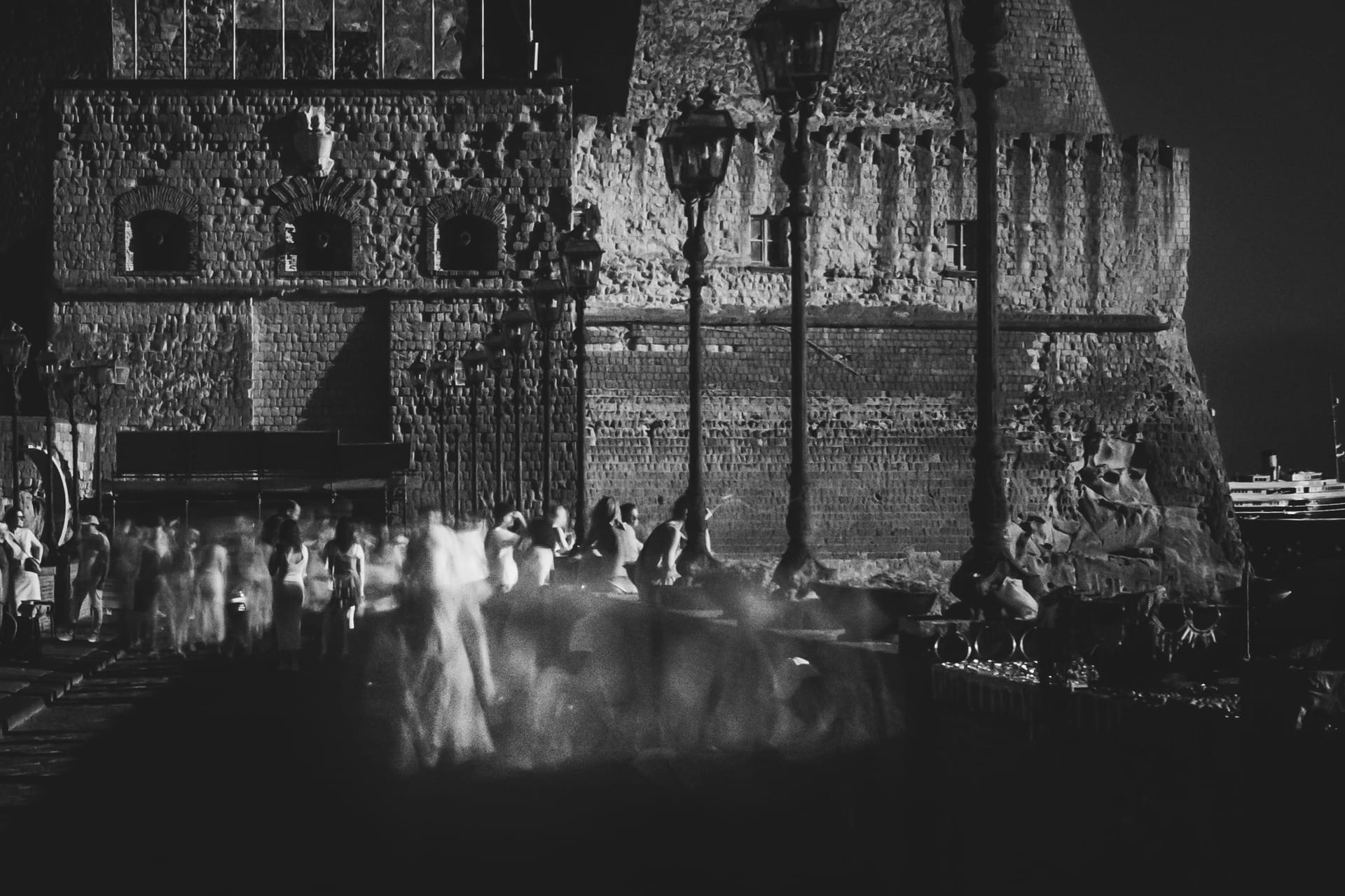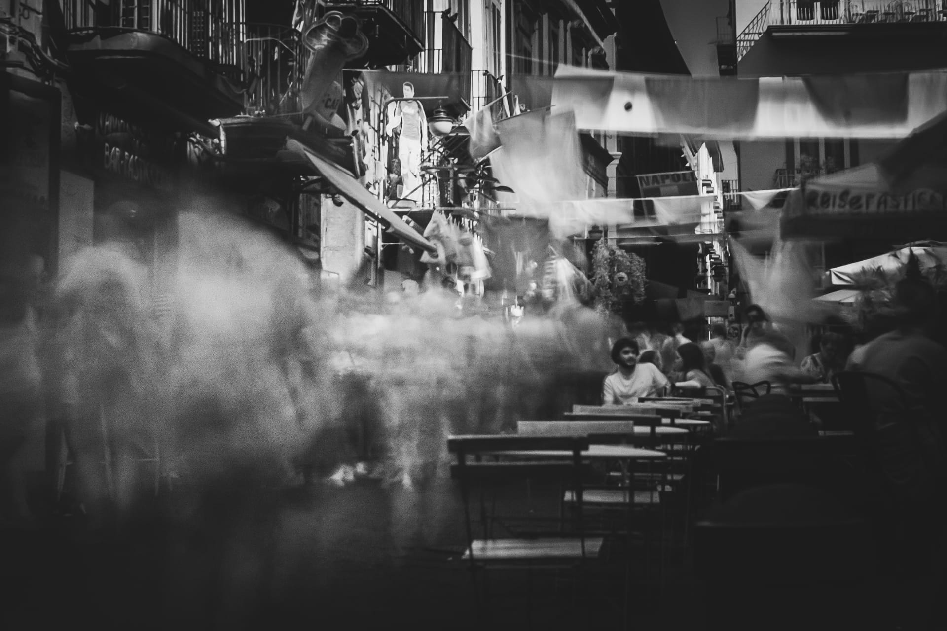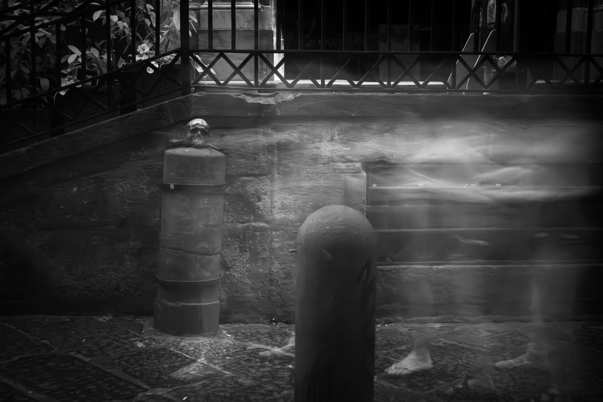 Le anime, protagoniste silenziose di questo percorso, si muovono tra le strade di Napoli, si confondono con la gente, rivivono i luoghi amati. Ombre che portano con sé suggestioni antiche, eredità della tradizione greca e latina.